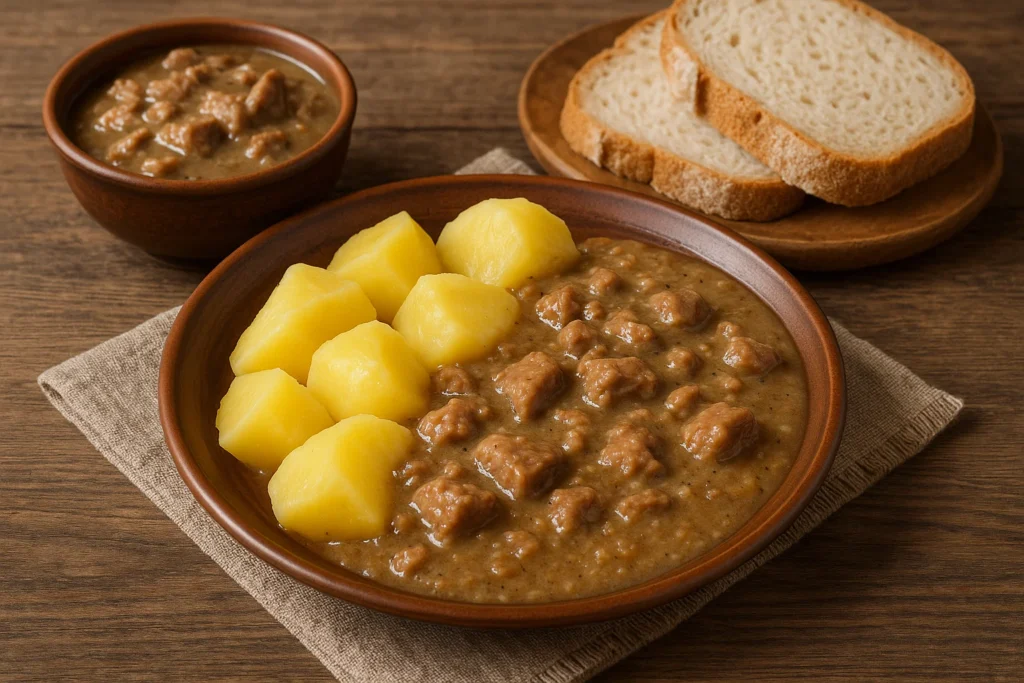 Картопляники. Починаємо з них. І починаємо не просто так — це візитівка регіону. Картопля натирається на дрібній тертці (важливо — саме дрібній!), додається трохи борошна, яйце, сіль. Начинка може бути різною: класика — гриби з цибулею, але можна і м’ясо, і сир, і навіть солодкі варіанти з маком. Смажать на чавунній сковороді. З двох боків. До золотистої, хрусткої скоринки. Подають гарячими. Обов’язково — зі сметаною.