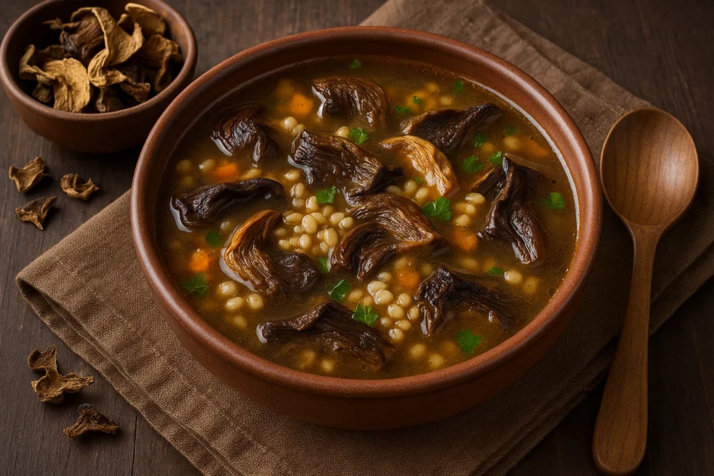 І юшка з сухих грибів — її варять на м’ясному бульйоні, додають перлову крупу або пшоно, і ця страва така наситна, що після неї годин п’ять їсти не хочеться. А запах? Коли відмочуєш сухі гриби, і вони починають віддавати свій аромат у воду — це щось неймовірне.